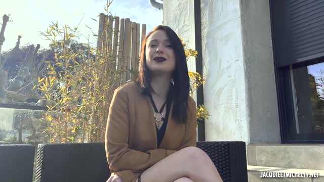 Blonde teen Jenna Fireworks strips down and plays with her pink pussy while giving jerk off instructions to her stepdad.
